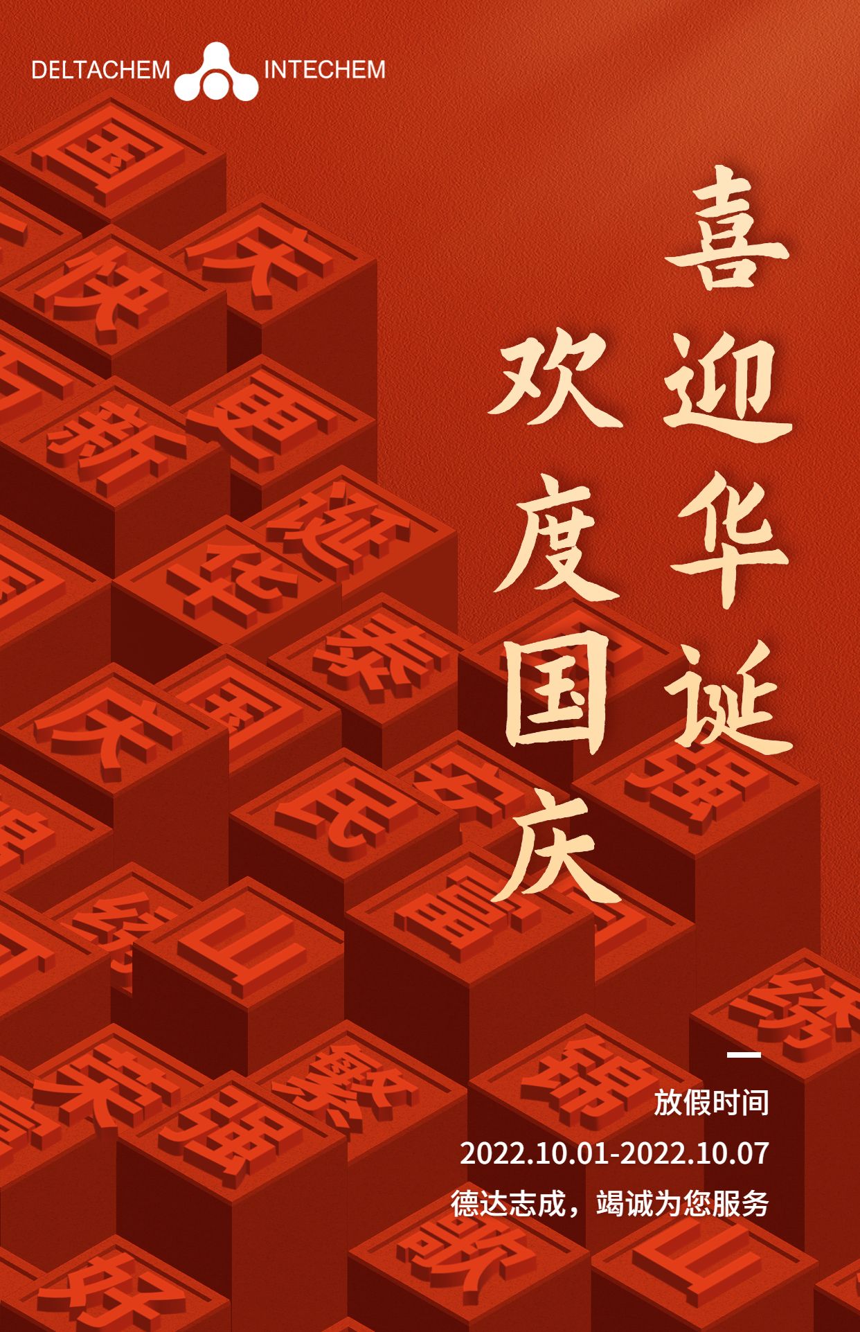 值此國(guó)慶佳節(jié)來(lái)臨之際,青島德達(dá)志成為您送上最真摯的祝福!祝您國(guó)慶快樂(lè),闔家安康!另:10.1-7國(guó)慶期間公司全體員工也將進(jìn)行休假,屆時(shí)如您有任何業(yè)務(wù)需求可電話或郵件聯(lián)系我司員工,我司業(yè)務(wù)人員也將在第一時(shí)間與您聯(lián)系~如因國(guó)慶休假給您與貴公司帶來(lái)不便,我們深感歉意,并敬請(qǐng)諒解!