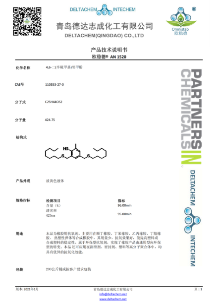 作為一種新型高分子量液體抗氧劑產(chǎn)品,該產(chǎn)品對(duì)橡膠的穩(wěn)定和粘合劑化合物穩(wěn)定有一定的效果。AN1520不僅能有效防止凝膠的形成,降低存放在庫(kù)房和運(yùn)輸過(guò)程中橡膠顏色、分子量及粘度變化。同時(shí),AN1520也可以用在聚合或有機(jī)基體中,包括熱塑性彈性體、合成油等,具有優(yōu)異的抗氧化性能。