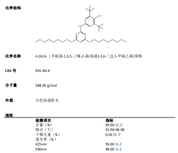 高分子聚合物及其制品在使用或貯存過程中,由于受熱、光照、氧化、和金屬離子的催化作用,其表面會逐漸發(fā)生變化,例如變色、發(fā)粘、變硬發(fā)脆、產(chǎn)生裂紋等;同時機械性能降低,伸長率等大幅度下降,透氣率增大,會導致聚合物材料失去使用價值。為了抑制或延緩上述現(xiàn)象,延長它們的使用壽命,提高其使用價值,可在高分子聚合物的制備過程中加入一些能延緩其老化的化合物——抗氧劑。