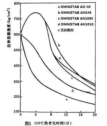 圖1是幾種常見(jiàn)抗氧劑在PA-6中的使用效果,可以看出AO-80的抗氧效果明顯要好于目前廣泛使用的AN1098和AN1010。