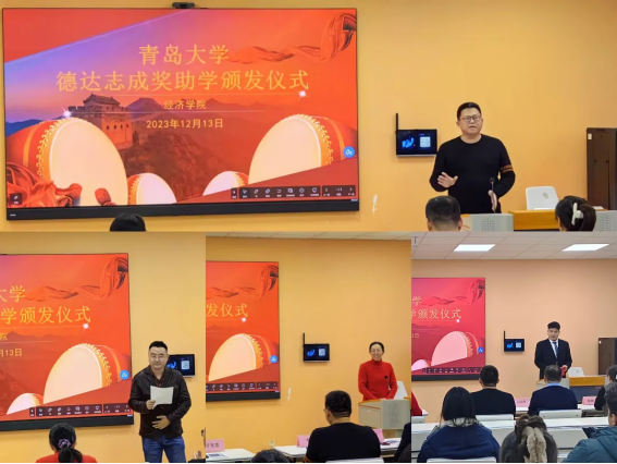 12月13日,第十屆“德達特化”獎助學金頒獎儀式在青島大學經(jīng)濟學院會議廳隆重舉行。青島德達特化集團總經(jīng)理鄒超先生親自出席了本次活動,并與青島大學經(jīng)濟學院學工辦主任任龍老師一同,為來自經(jīng)濟學院、化工學院、材料學院獲獎的30名學生頒發(fā)獎助學金,共計五萬元。