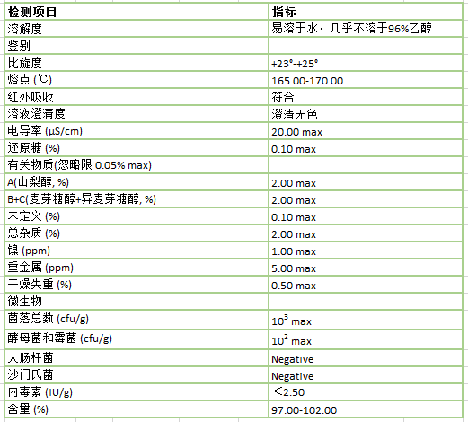 醫(yī)藥上用作脫水劑和利尿藥,用于降低顱內(nèi)壓、眼內(nèi)壓、利尿及防治早期急性腎功能不全,也可用于甜味劑(低熱量、低甜度);營養(yǎng)增補劑;品質(zhì)改良劑;糕點、膠姆糖等防黏劑;保溫劑。