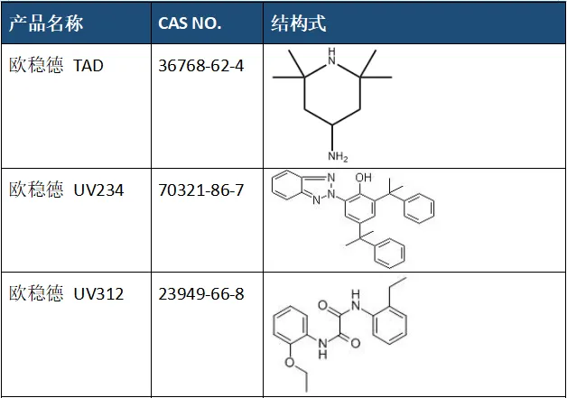 除尼龍工程塑料外,我司在其他汽車內(nèi)外飾件材料改性方面也有豐富合作經(jīng)驗,可針對不同基材提供配套助劑改性方案,如PC, ABS, PVC等復(fù)合材料。欲了解更多歐穩(wěn)德? 紫外線吸收劑、光穩(wěn)定劑、抗氧劑產(chǎn)品信息,歡迎隨時致電咨詢。