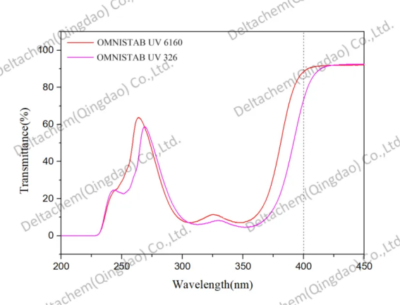 應(yīng)眾多客戶的要求,我司也在積極地尋找應(yīng)對策略,并且經(jīng)過我司研發(fā)團(tuán)隊(duì)的不懈努力,目前已經(jīng)開發(fā)出一款UV326的替代品----OMNISTAB UV6160,該產(chǎn)品符合REACH法規(guī),能吸收300-400nm紫外線,與多種樹脂相容,可以同時用于工業(yè)品和化妝品,且與UV326的吸收譜圖幾乎一致,能滿足大部分配方中UV326的替代要求,一經(jīng)推出,解決了眾多客戶的“燃眉之急”。