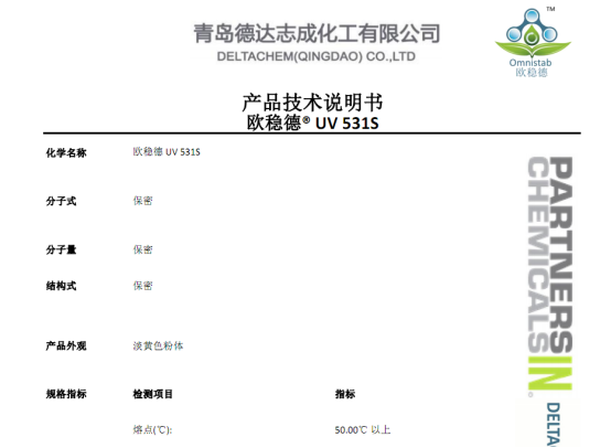 為了不受制于國(guó)內(nèi)間苯二酚的供應(yīng),我司以色列研發(fā)團(tuán)隊(duì)對(duì)UV531的配方進(jìn)行升級(jí)改良,成功研制出UV531的替代品---OMNISTAB UV531S。