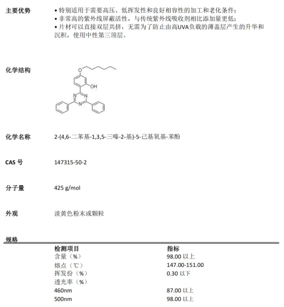 歐穩(wěn)德? UV1577產(chǎn)品指標