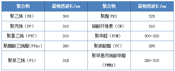 日光中的紫外線根據(jù)波長(zhǎng)的不同,可分為三個(gè)波段即:近紫外線UV-A(400-315nm)、遠(yuǎn)紫外線UV-B(315-280nm)和超短紫外線UV-C(280-180nm)。三種波段的光中UV-C區(qū)紫外線大部分被大氣層中的二氧化碳吸收,難以到達(dá)地面。研究表明,UV-A區(qū)紫外線對(duì)高分子材料制品的傷害程度小于UV-B區(qū),且UV-B區(qū)紫外線不能被大氣層有效地吸收。因此對(duì)紫外線的防護(hù)主要體現(xiàn)在對(duì)UV-A區(qū)和UV-B區(qū)的防護(hù)上。