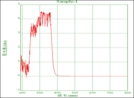 從該譜圖中可清晰看出UV1577在UV-A和UV-B范圍內(nèi)(280-400nm)的紫外光有強(qiáng)吸收,顯示出較好的紫外線吸收性能。從而能大大降低高分子制品在紫外光中的傷害,有效延長(zhǎng)高分子材料制品的使用壽命。