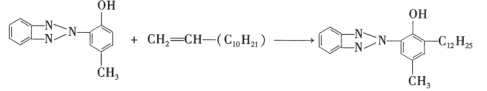 UV-P與12烯-1進(jìn)行烷基化反應(yīng)可制成高分子質(zhì)量的液體穩(wěn)定劑——OMNISTAB UV 571,具體改性過程如下: