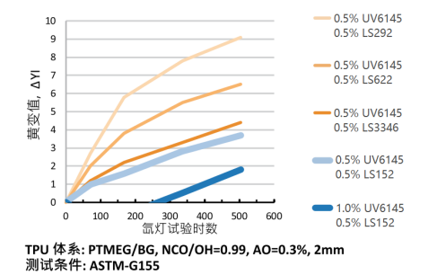 圖2 UV6145 TPU與HALS的協(xié)同效應(yīng)