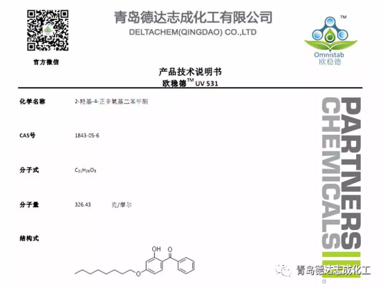 歐穩(wěn)德?UV-531可吸收屏蔽高能量紫外線進(jìn)行能量轉(zhuǎn)換,轉(zhuǎn)換為其他無害的能量并散失掉,達(dá)到保護(hù)高分子材料免收紫外線破壞的作用,延長了高分子材料的使用壽命。
