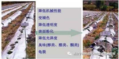 塑料等高分子材料之所以具有許多優(yōu)良性能,歸結(jié)于其具有足夠長(zhǎng)的大分子鏈,但由于紫外線波長(zhǎng)短、能量高,在紫外線作用(大多數(shù)還有氧的參與)下,高分子材料吸收紫外線后,容易形成電子激發(fā)態(tài),這種激發(fā)態(tài)的分子可以引起一系列的光化學(xué)反應(yīng),即自由基鏈?zhǔn)椒磻?yīng),并同時(shí)與氧化相伴發(fā)生“光氧老化”或“光氧化反應(yīng)”。高分子大分子鏈被切斷或產(chǎn)生一定的交聯(lián),直接影響到了高分子材料的性能,于是就出現(xiàn)了一系列老化現(xiàn)象。如顏色變深、發(fā)脆、變硬、表面龜裂以及機(jī)械性能與電性能下降等,以致最后喪失其使用價(jià)值。