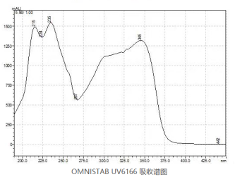 歐穩(wěn)德UV6166是苯并三唑類紫外線吸收劑,除具有分子量大、不易揮發(fā)、耐抽出、易加工的特點。產(chǎn)品吸收譜圖如下,吸收范圍集中在200-400nm。