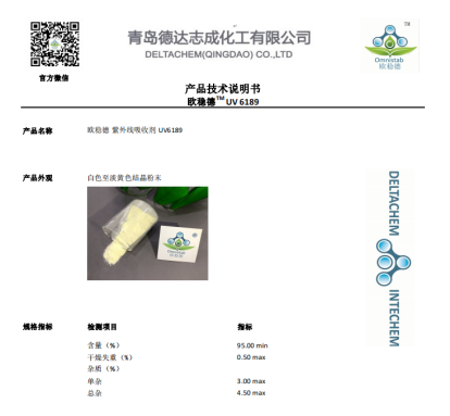 歐穩(wěn)德紫外線吸收劑UV6189我司已生產(chǎn)和銷售多年,產(chǎn)品在國內(nèi)和國外均有銷售,憑借穩(wěn)定的產(chǎn)品供應(yīng)和優(yōu)質(zhì)的產(chǎn)品服務(wù)已經(jīng)獲得了廣大客戶的認(rèn)可與好評。如果有關(guān)于該產(chǎn)品的任何使用或技術(shù)方面問題,歡迎隨時與我們溝通交流,我們有專業(yè)的技術(shù)團隊可以提供產(chǎn)品解決及優(yōu)化方案。