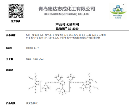 綜上,歐穩(wěn)德 LS2020是可以作為聚烯烴(PP、PE),烯烴共聚物(例如EVA)以及聚丙烯的混合物與彈性體的高效光穩(wěn)定劑使用。并在特定情況下,歐穩(wěn)德 LS2020在聚縮醛、聚酰胺、聚氨酯、軟質(zhì)和硬質(zhì)PVC以及PVC混合物以及某些苯乙烯彈性體和特種膠粘劑中也具有非常優(yōu)異的性能。